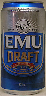 4 | EMU DRAFT BITTER - FINEST BARLEY - FULLY BREWED - Since 1923 - Brewed in Western Australia - 3.5% ALC/VOL - 10 grams ALC/CAN | ||||||